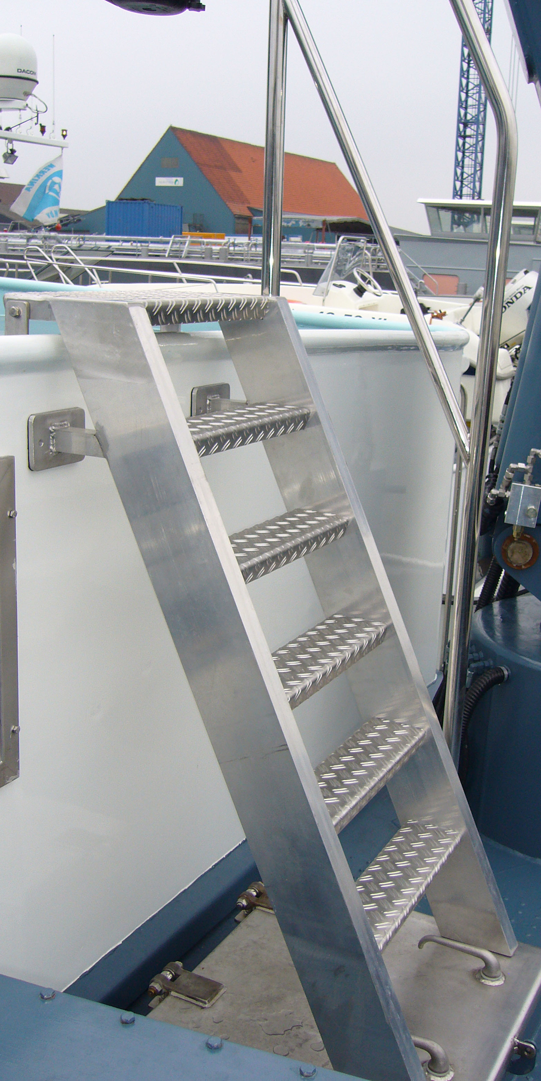 Wanneer u op een veilige manier van- en aan boord wilt komen of ergens overheen wilt klimmen, kunnen wij voor u zoeken naar de juiste oplossing in de vorm van een aluminium trap, aluminium bordes, of een aluminium loopbrug. Al onze