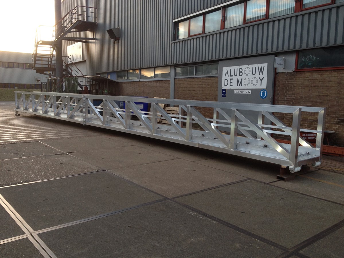 Wanneer u op een veilige manier van- en aan boord wilt komen of ergens overheen wilt klimmen, kunnen wij voor u zoeken naar de juiste oplossing in de vorm van een aluminium trap, aluminium bordes, of een aluminium loopbrug. Al onze